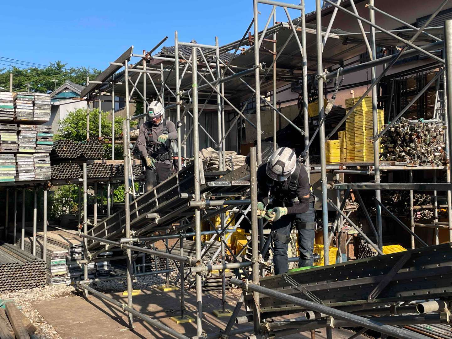 上記写真は資材置き場での練習の様子です。2人とも毎日真面目に仕事と向き合っていて凄く仕事を覚えました。