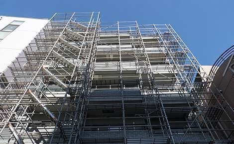 わたしたちの手掛けている足場工事は、さまざまな建物の改修工事や新築工事において必要不可欠。高所作業が多く危険と隣合わせの仕事ではありますが、建設業界では欠かせない存在でニーズは豊富です。大場工業では単に足場を組むだけでなく、各建築業者様がスムーズに施工を行なえるような、安心・安全の足場を組むことを常に心掛けています。